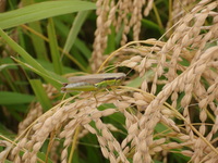 過日アカネトンボ(環境指標生物)の調査行いました。タニシも大発生して居ました。秋には赤トンボと稲刈りをしたいです。