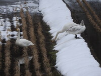 今年も田んぼに白鳥が来ました。私の田んぼに来るのはいつも白鳥が飛び立つ前なので、そろそろ春が来るんだろうなと予感します。今年は暖冬で雪がなかったのですが3月に入り例年以上に降ったため、まだ雪が解けずハウス作業が遅れそうで心配です。