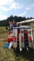 令和2年の稲刈りがスタートしたが途中でコンバインのクローラが断裂してストップ、3日ほどで修理できるがとりあえずコンバインのもみを出して運搬、その間、孫のおもちゃと化してしまった。