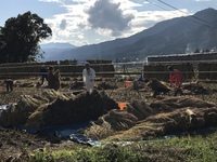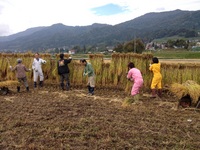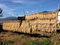 | 27年度産コシヒカリのはざかけ作業の様子 |
