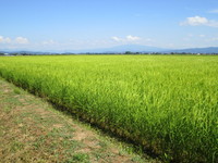 穂が出そろい大切な実入りの時期を迎えました。日中気温は33度になりましたがさわやかな風が吹いています。朝方はかなり気温も下がり稲の稔りにとってはとても良いことです。今はあまり目立ちませんが田んぼの中の草もこれから子孫を残すためにぐんぐん伸びてきます。あと1か月、草とのお付き合いです。新米もう少しお待ちください。