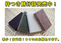 定番のこがねもちは原料に新潟県認証の特別栽培米を使用しております。