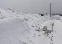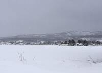田んぼは深い雪に覆われ、まだ春は遠くに感じられます。