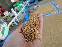 品種が変わるので、前の品種が混ざらないように、コンバインや機械を掃除します。