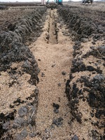 暗渠は穴の開いた管を地面の中に布設しますが、その周りに、もみ殻を充填します。