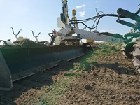 作業は、暗渠布設作業、レーザーレベラー、トラクターダンプで整地です。