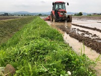 4月30日、私が受け持ちで草刈りを担当している田んぼに出かけると、組合長が5月4日の田植えの初日に六方銀米をうえるこの田んぼの代掻き作業中。