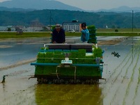 ゴールデンウィーク、5月4日から田植えを始めました。これからほぼ1ヶ月間、8条植え田植え機2台をフル稼働して、村のみんなも応援して田植えが続きます。
