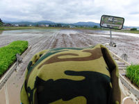 豊岡を前方右に見て進んできますから、雨風が心配で、一級河川の円山川を上流から沿ってくるようなコースなので、植えたばかりのお米の苗や大豆の葉が水に沈まないかと、ヒヤヒヤしています。てるてる坊主を作らなきゃ!
