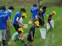 第二回あぐりキッズ6月の小学生のみんなと生き物調査をしました。かえるやドジョウやエビがたくさんたくさん!