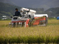 天候に恵まれ順調に稲刈り、