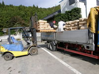 契約米出荷 トラックに積み込み関東方面へ出荷です。一安心です。新米を心待ちにしている消費者の皆様へ届けて貰います。