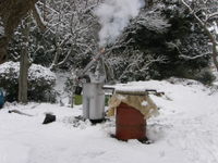 雪の中燻炭焼いてます。