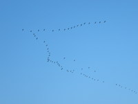 夕暮れ時西の空へ向かって、雁の群れがいくつもの集団に分かれて、飛んで行った、大陸へ帰り始めたのでしょ