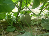 メロン間もなく収穫出来そうです。今年は、高温が続いたので、美味しいかも、楽しみです。