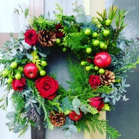 妻が初めてクリスマスリースを作りました。今年の冬はこれでお客様をお出迎えいたします。