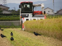 台風の前に刈り取っている自然栽培米こしひかり