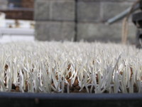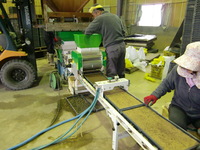 ネットの袋だと、水の通りも良く、種子全般に水が行き渡ります。弊社では、大きめのネットの袋を使い、余裕を持たせて、5kg詰めにしています。総種子量は、約1,200kgです。