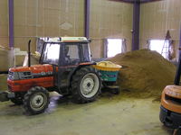 近くにJAの支店の倉庫が有り、雨の日でも濡れずに中で下ろせるため、予報は雨だったので、荷下ろしを御願いしてありました。