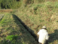 田圃横の斜面に竹やら木やら生えて、稲の影になるため冬場の草の少ない時期に伐採。
