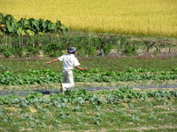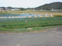 | 来季に備えて植物性有機肥料を田圃に散布 |