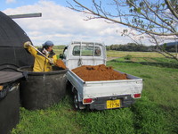 ボカシ熟成樽から軽四に積込み