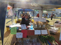お米と野菜を販売。サツマイモ、インゲン、ダイコン、サトイモ、ブロッコリー、米ヌカはお祭り価格で販売し完売。お米はいつも通り大苦戦でした。