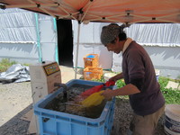 水を飲みながら、休みながら、熱中症に注意しながらの作業です。