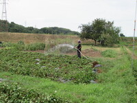 急遽、水路から水中ポンプで散水、約1反の畑に撒くのにかなり時間が掛かりました。