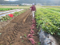 紅はるか、シルクスイート、安納芋、合わせて1反ほどを二人で3日掛けて掘り終りました。