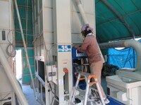 民家が近くに有るため、乾燥機・籾摺り機から出る膨大な粉塵を除去するための設備、トップクリーナー、ビニールハウス、スプリンクラーを撤去、作るのに約2日、撤去するのに約半日掛かりました。