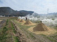 風の状況により出来上がり時間が変わるので、出来るだけ早く焼いて陽が落ちる前に終わろうと、朝7時に点火、川から水路を通して引いてきた水を掛け消火、後片付けをして午後4時頃終了。