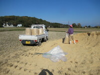 籾殻袋に詰め軽トラに載せ、畑に運びます。けっこう回数があり手間の掛かる作業です。