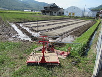 幸か不幸か、最後の田圃の代掻き中、ハローの左側作業機の不具合がありレイキを使っての人力での作業となりました。何はともあれ、田植えが終わり一安心です。