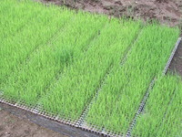 今年の苗作りは、種まき後の雨のため、箱並べが遅れ、出た芽を折るアクシデントがありましたが、なんとか例年並みの状態になったようです。