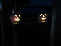 切り取った株の未熟なスイカを使って、スイカランタンを作って見ました。