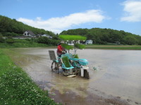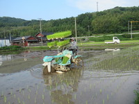 前日、予定していたが大雨でできず、代掻き後、中2日おいての田植えとなりました。