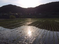 田植えは、茶色のキャンパスに、緑色の線を何本も引いていく感じ。なるべくまっすぐに・・・。