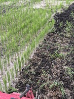 年々生える草も変わってきています。昔はこんな草無かったのにな〜なんて言いながら草取りしています。何だか納得はいきませんが・・・畦からツルが田んぼに入ってきています稲まで倒して収穫が苦労するんですよね〜そこでこの時期にツル退治しています。コシを曲げないでも草取りが出来る草取り棒を使ってツル退治ですね