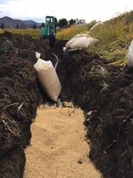 パイプの上に籾殻を(籾殻は腐りづらいですので)入れて上から土をかぶせて完成です。