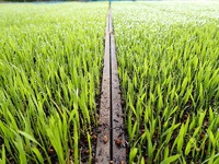 田んぼは、代掻きをすることでが水が地下に浸透するのを防いでいます。