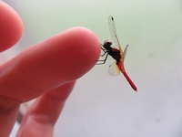 私も、数年に一度ぐらいしかお目に掛かれない珍しい小さな赤とんぼです。