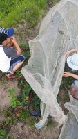 昨年、スズメの被害が多く、収穫量が大幅に減ってしまったため、防鳥ネットを新調し、細かい目合いのネットにしました。
