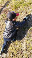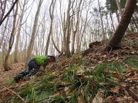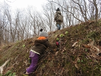 3歳になったばかりの息子ですが、落ち葉で滑る急斜面を這いつくばって登って行きます。