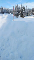 写真の雪の中に埋もれた紅白の棒は、除雪機が除雪する時の目安になります。