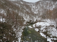 写真は、以前はタラノメ、現在はセリを栽培しているビニールハウスの後ろの渓流です。