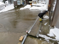 この水を家の前や小屋、車庫の前に流して、融雪に使っています。