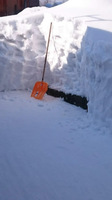 ※写真手前は雪消しした部分。農場主父がやってくれなければ、スコップのある手前も雪に埋もれたままです。【嫁】