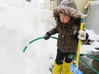 そのまま外で雪かき遊びと水遊びです。