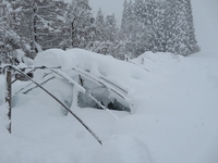 1階建ての小屋は雪に埋もれ、中の小屋も2階の屋根まで雪が積もってしまいました。